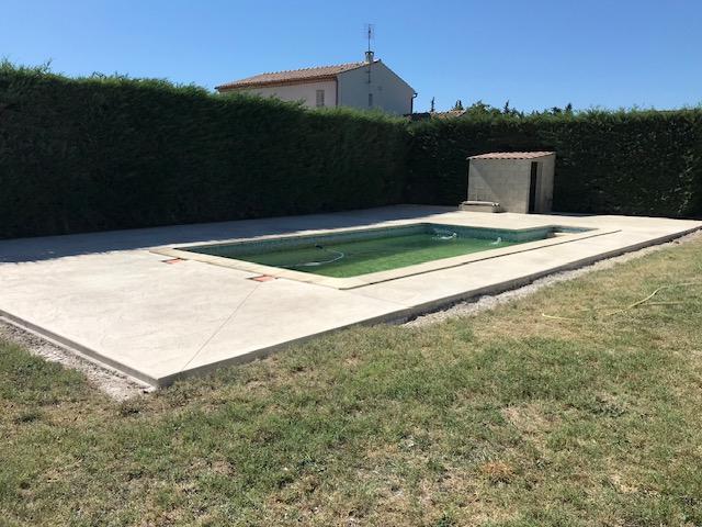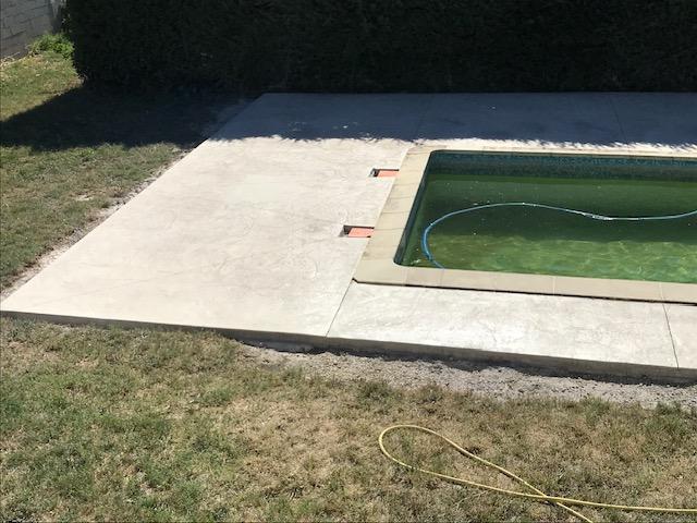 Grace au procédé du béton imprimé qui consiste à obtenir toutes les formes de matériaux possible pour la création d'une terrasse, d'allées, de plages de piscine (allant du bois, au carrelage, au pavé ou même à la dalle de pierres de toute région) par impression direct sur le béton frais coloré.