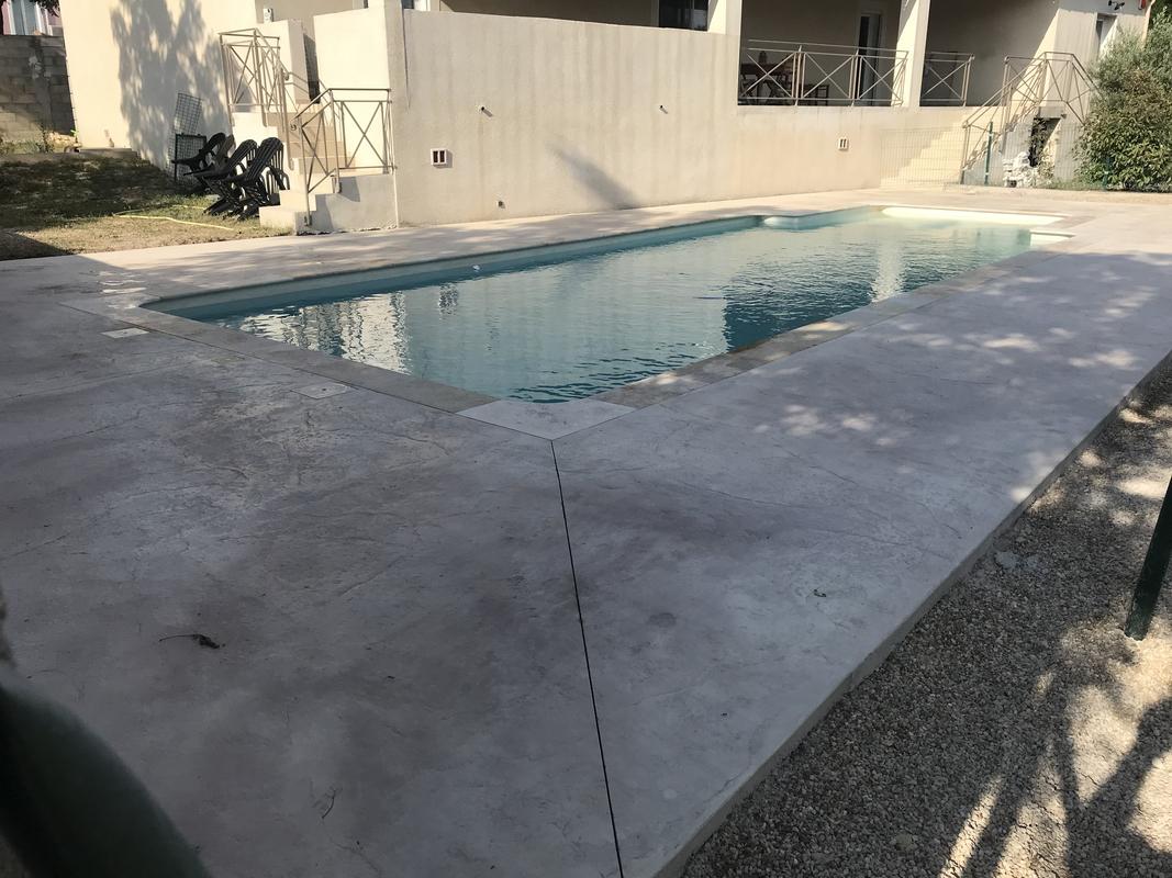 Par ce procédé vous pouvez par exemple, obtenir une superbe terrasse en pierre du gard ou de Fontvielle criante de réalisme sans un gramme de pierre uniquement avec du béton.